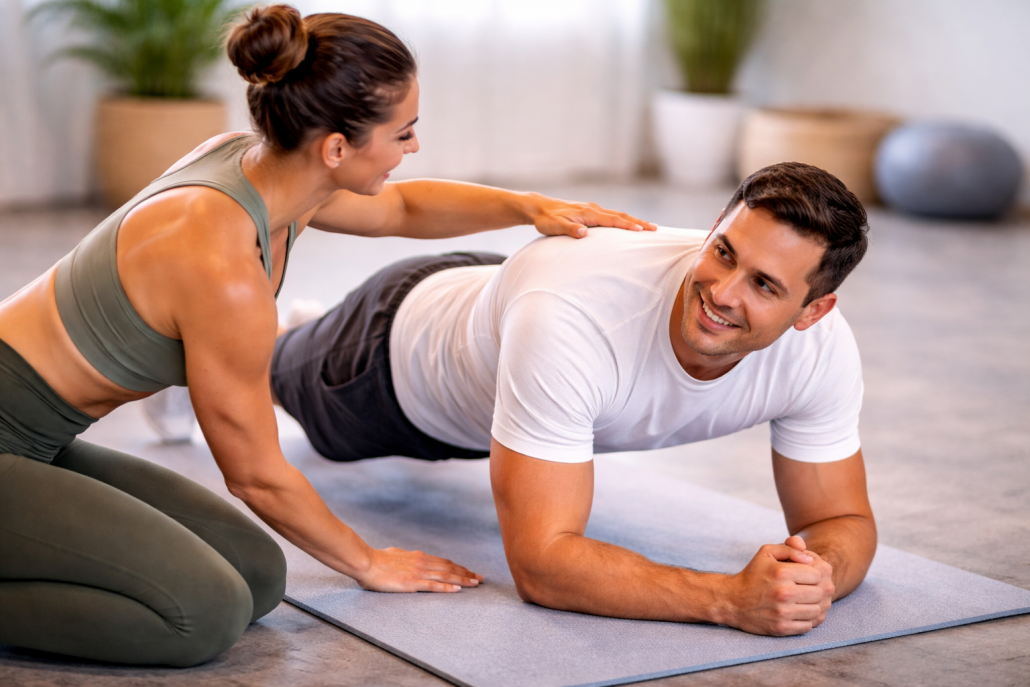 Durch Elemente aus dem Pilates wird die Core-Aktivierung bewusst geschult. Eine stabile Körpermitte unterstützt nicht nur die Haltung, sondern verbessert auch die Kontrolle über Bewegungen im Training und im Alltag.